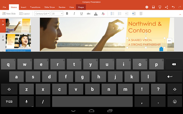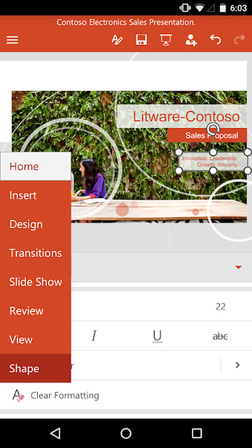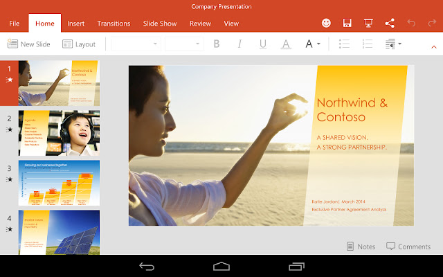 Seperti yang mungkin kamu harapkan, aplikasi ini telah dirancang khusus untuk kamu pengguna smartphone. Aplikasi Microsoft Office versi mobile ini sangat mudah digunakan sebagaimana versi dekstop. Contohnya pada Power Point, interface dirancang secara khusus untuk bisa digunakan hanya dengan satu tangan, baik itu untuk pengguna tablet maupun smartphone.
