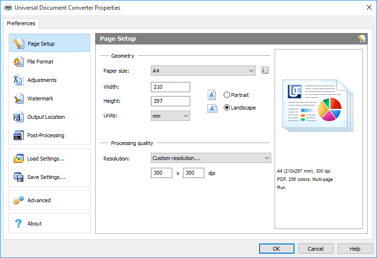 - Pilih printernya menjadi Universal Document Converter, klik printer properties, maka akan muncul jendela pengaturan Universal Preferences