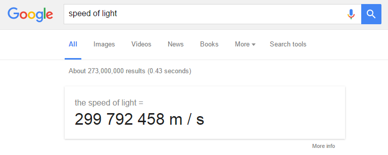Hasil perhitungan kecepatan ketika mencarinya di google, keyword (speed of light).