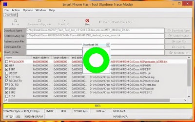 - Setelah 100% maka flashing selesai, ditandai dengan lingkaran hijau dengan tulisan OK