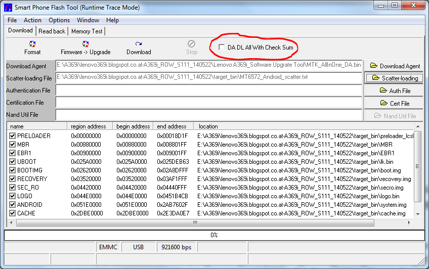 - Ekstrak file lenovoA369i_ROW_S111_140522.zip, di dalam folder Lenovo A369i_Software Upgrate Tool, jalankan Flash_tool.exe