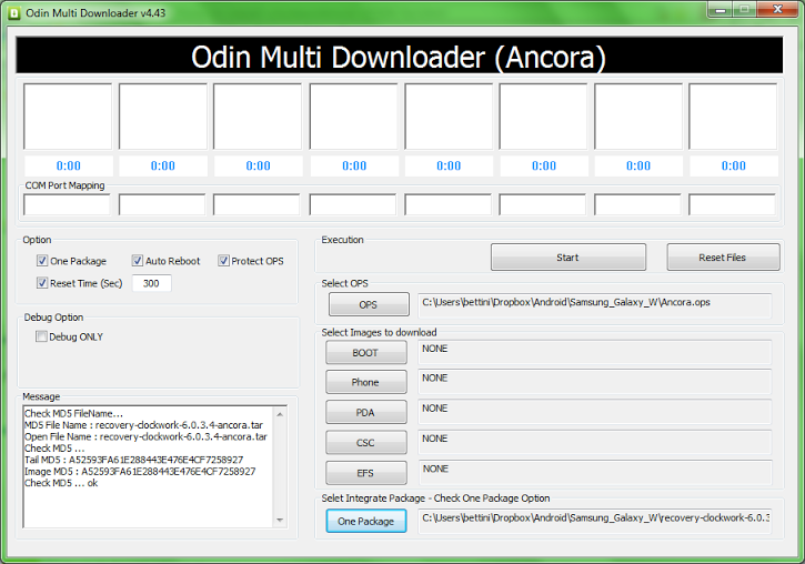 - Masukan file Ancora.ops di bagian OPS dan file recovery-clockwork-6.0.4.5-ancora.tar.md5 dibagian One Package (lihat gambar 1)